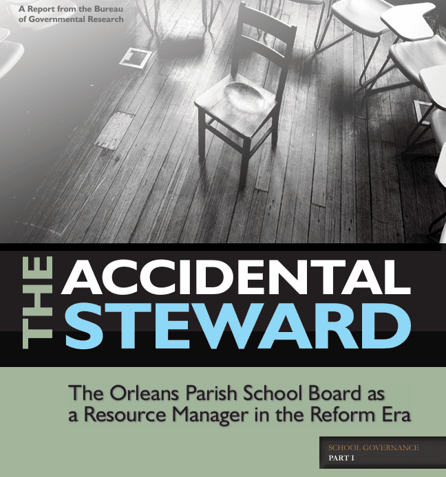 1938 work on N.O. public education. BGR staff worked with consultants to produce a 500-page report released in 7 weekly volumes.