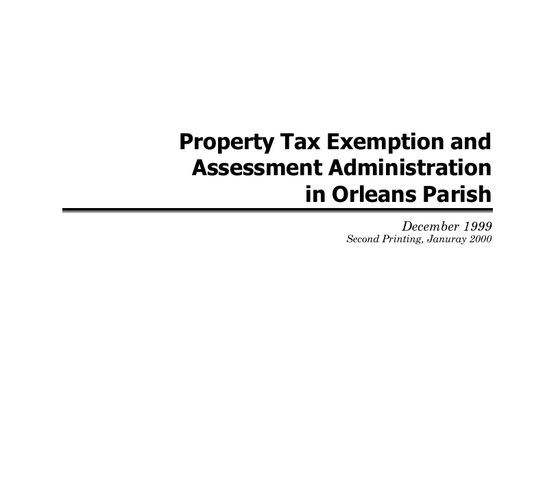 Property Tax Exemption and Assessment Administration in Orleans Parish (December 1999)
