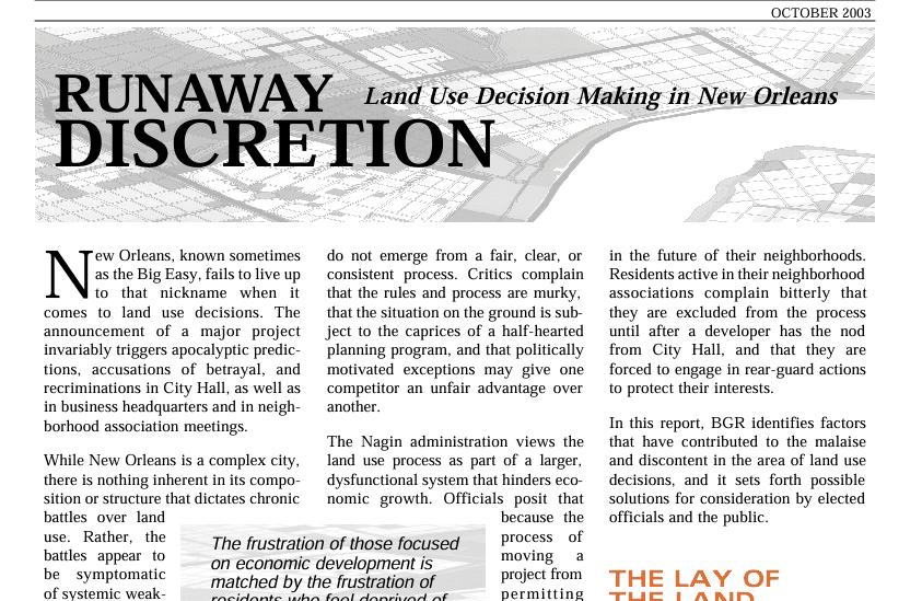 Runaway Discretion: Land Use Decision Making in New Orleans (October 2003)
