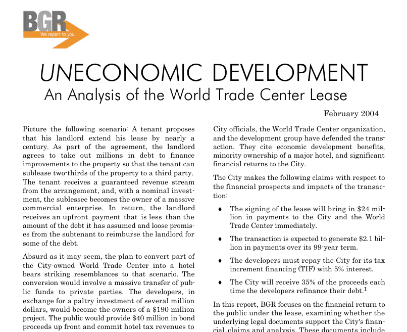 Uneconomic Development: An Analysis of the World Trade Center Lease (March 2004)