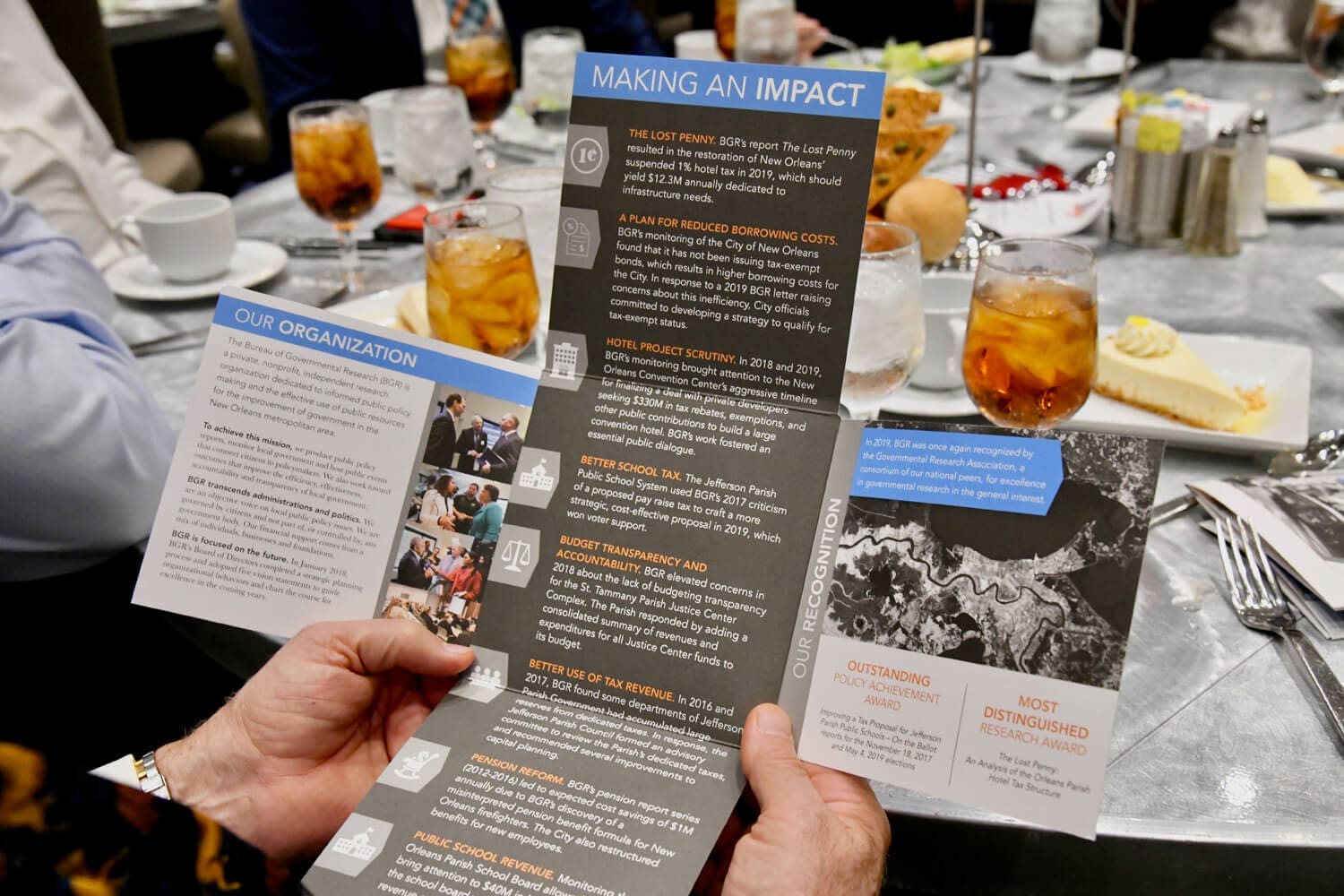 The Bureau of Governmental Research today held its 2019 Annual Luncheon featuring A Conversation with Michael Lewis. Bestselling author Michael Lewis spoke about his books and other works, his insights on national politics, his approach to research and writing, and other topics. Mr. Lewis shared these stories in a live interview with Gordon Russell, managing editor of investigations at The Times-Picayune | The New Orleans Advocate. For more about Mr. Lewis and Mr. Russell, see our media release. Following the interview, BGR board member and former WWL-TV anchor Dennis Woltering moderated a question-and-answer session with the audience. This presentation is part of the Janet Howard Speaker Series in Governmental Research. For additional perspective on this year’s presentation, see this editorial in The Times-Picayune | The New Orleans Advocate.