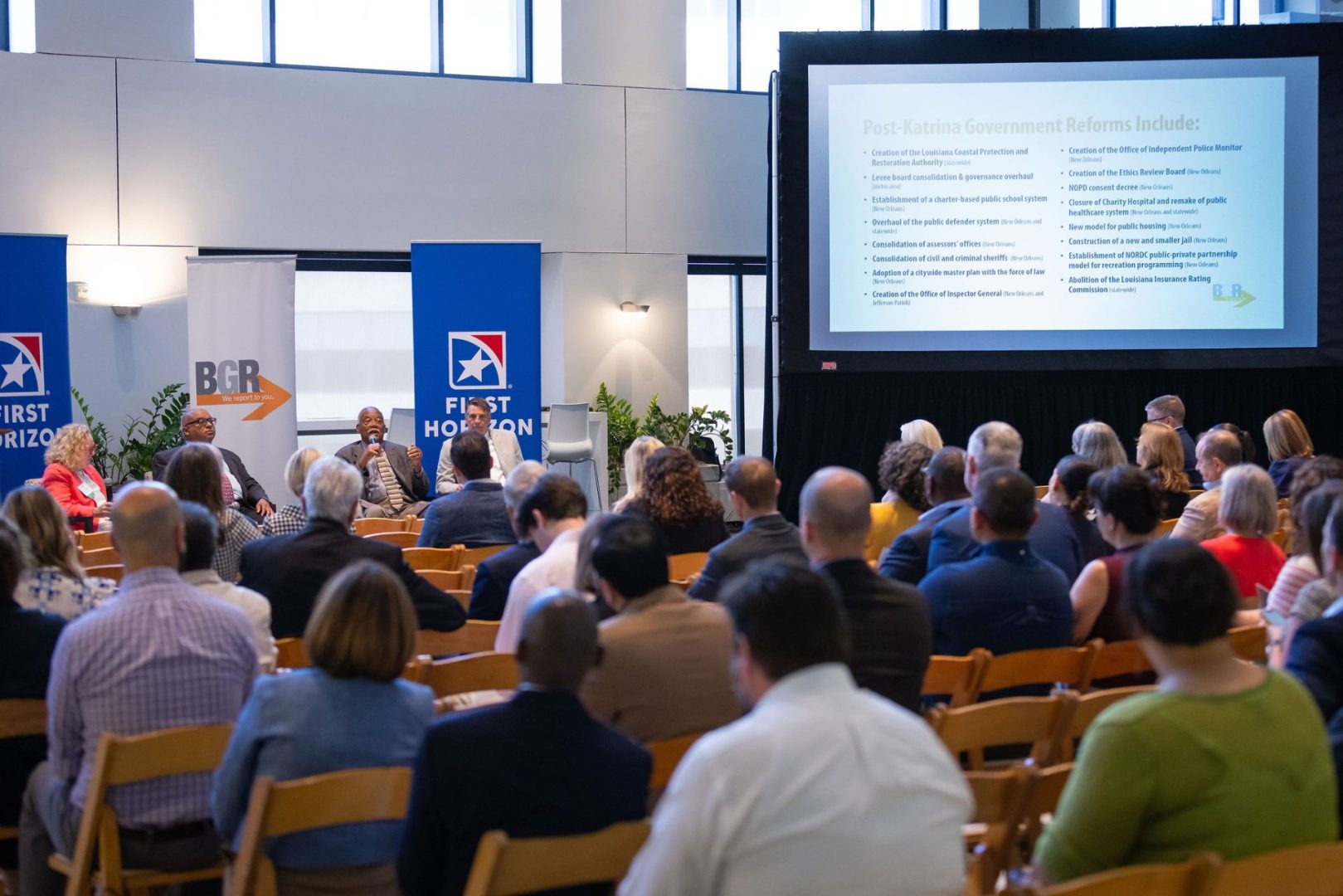 Twenty years after Hurricane Katrina devastated New Orleans, BGR’s June 18 Breakfast Briefing discussed the disaster’s lasting impact on local government reform—and what lessons public officials and citizens can use to inspire future change. This event was free to the public thanks to the generous sponsorship of First Horizon Bank. BGR also thanks WWNO New Orleans Public Radio for rebroadcasting the event on June 24.