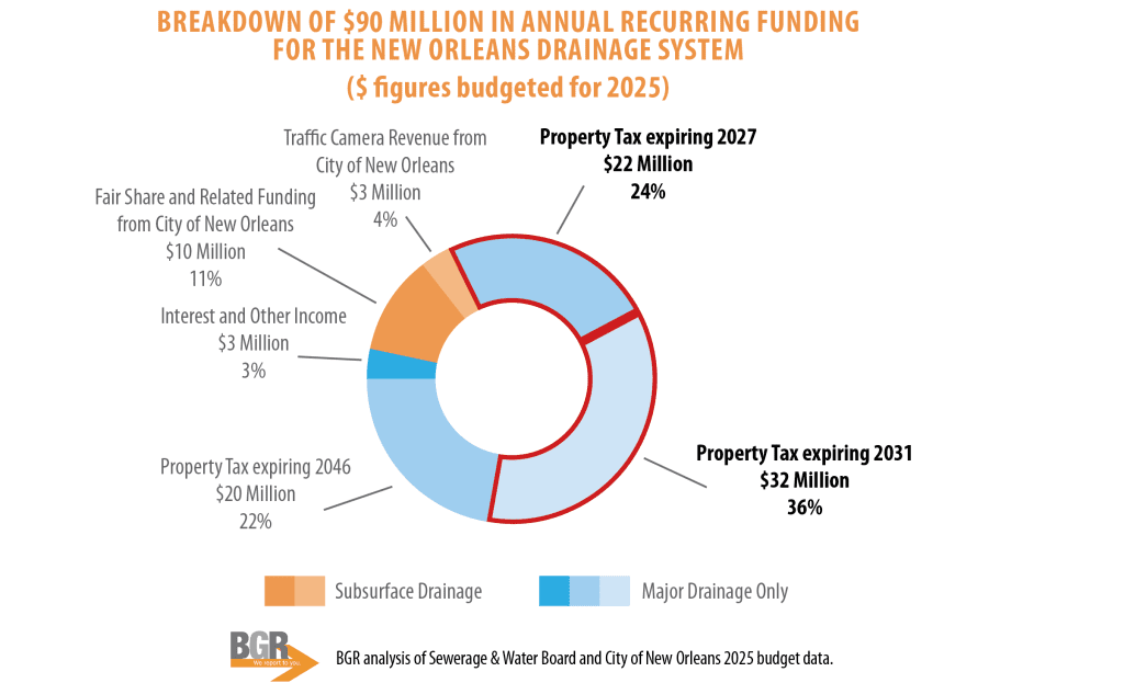 - The Sewerage & Water Board has less than $7 million a year available to finance approximately $800 million in major drainage capital needs.